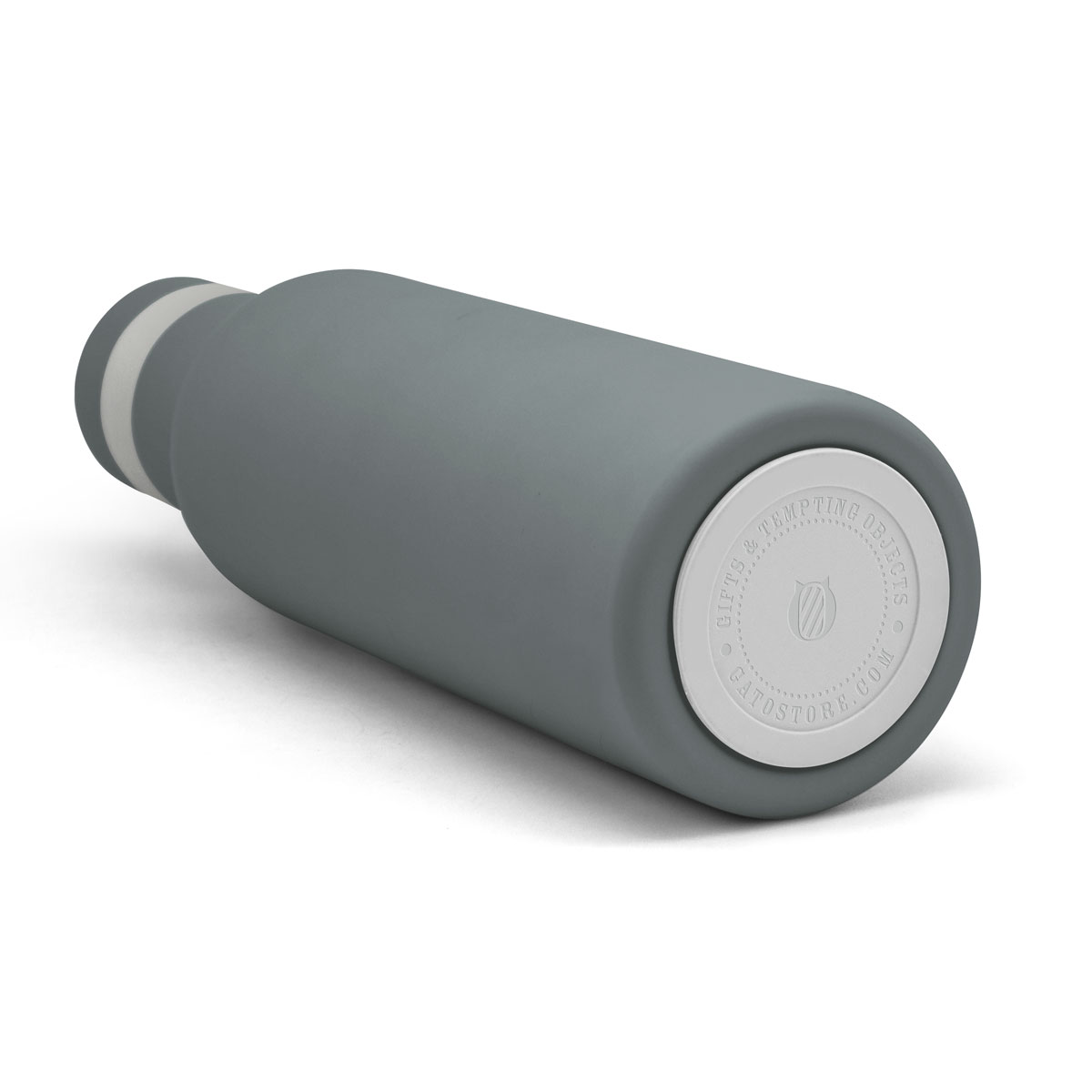 Ø 6,8 x 24,5 cm. Capacidad 500 ml. Acero inoxidable. Botella doble pared, sellada al vacío. Interior en acero 304 y exterior en acero 201 con terminaciones de silicona suave. Mantiene hasta 12 hs la temperatura de las bebidas calientes y 24 hs de las bebidas frías. Presentación en caja de regalo.